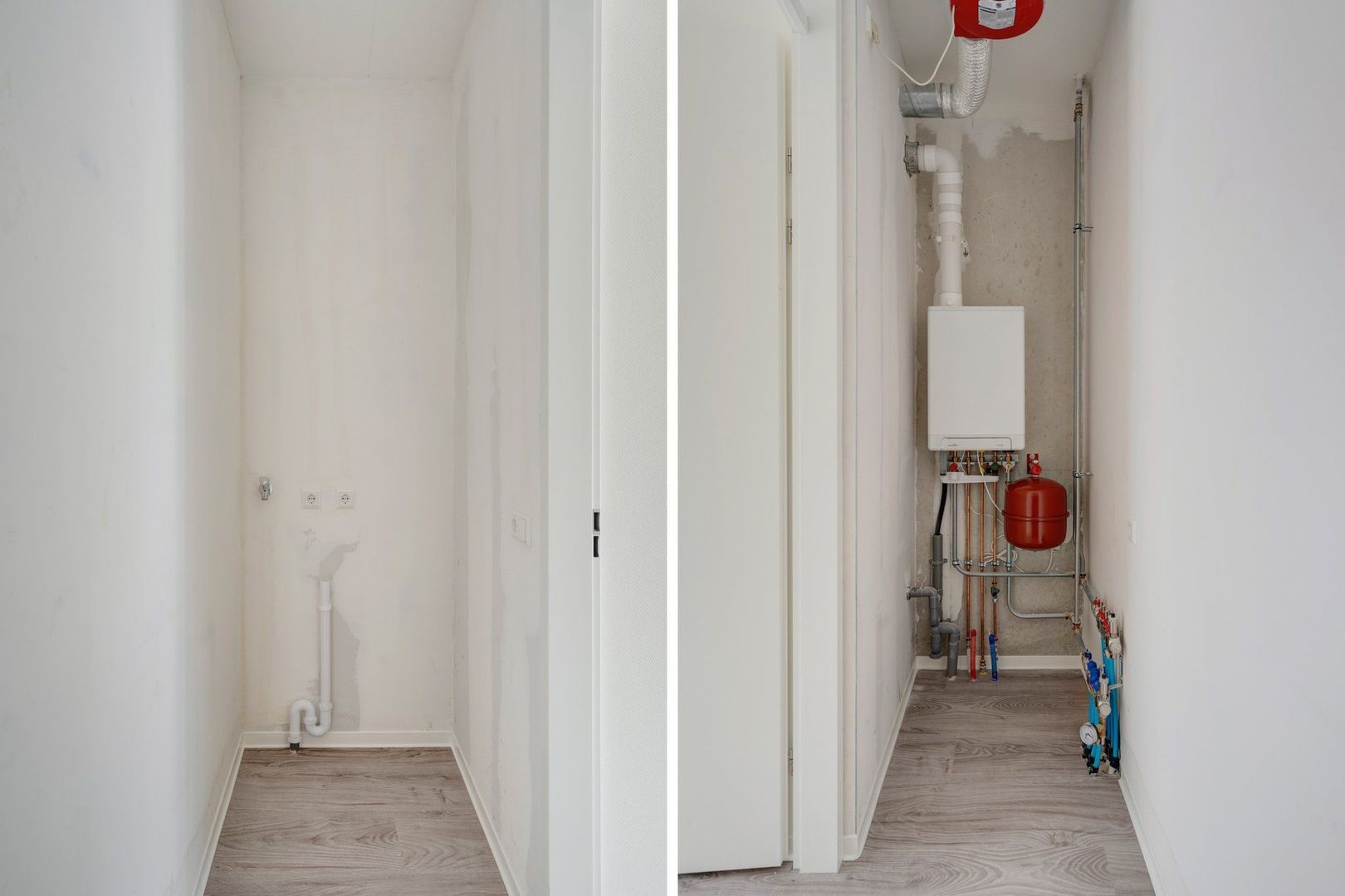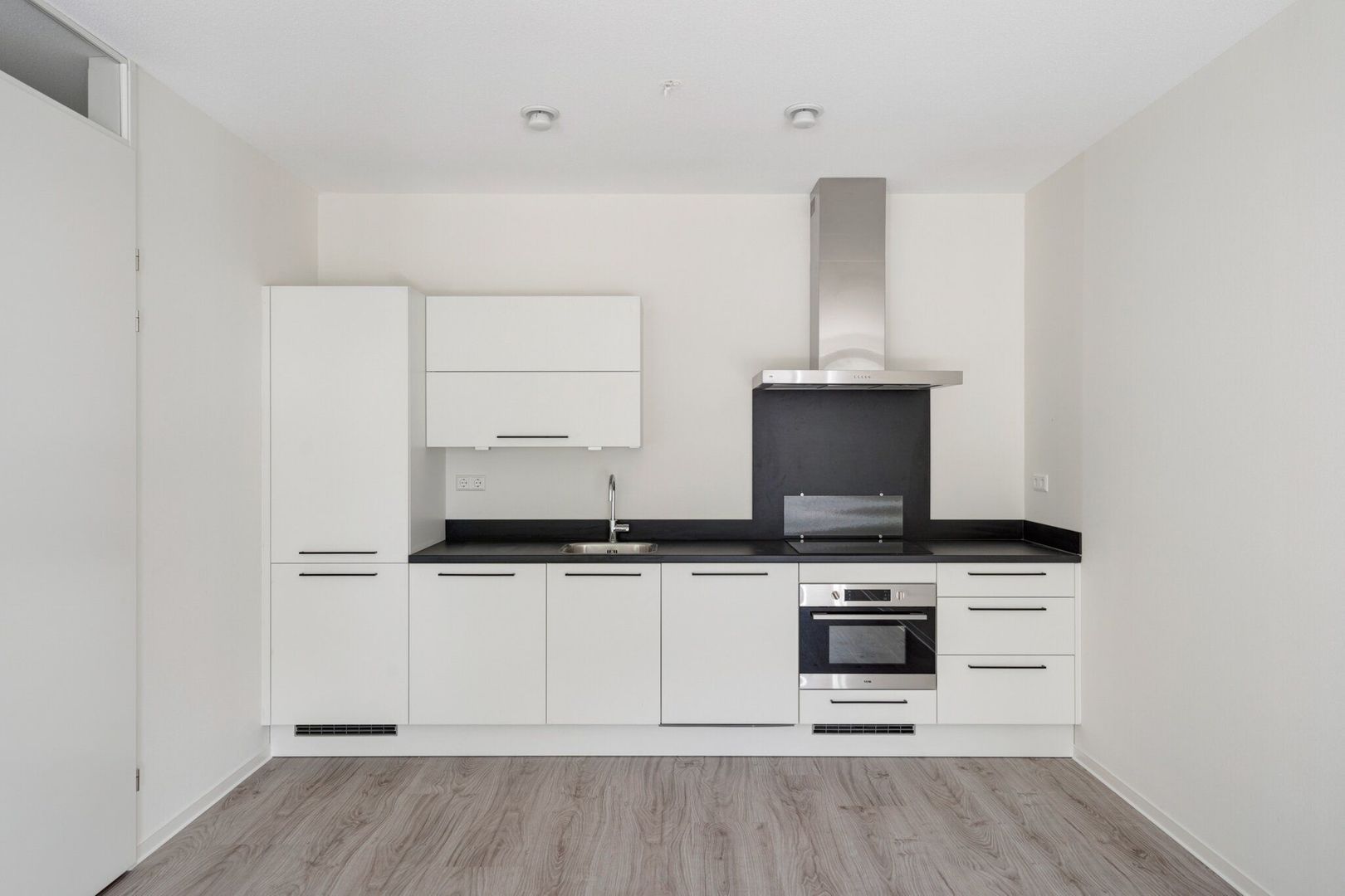 - Keuken met inbouwapparatuur, zoals koel- vriescombinatie, vaatwasser, inductie kookplaat en combimagnetron